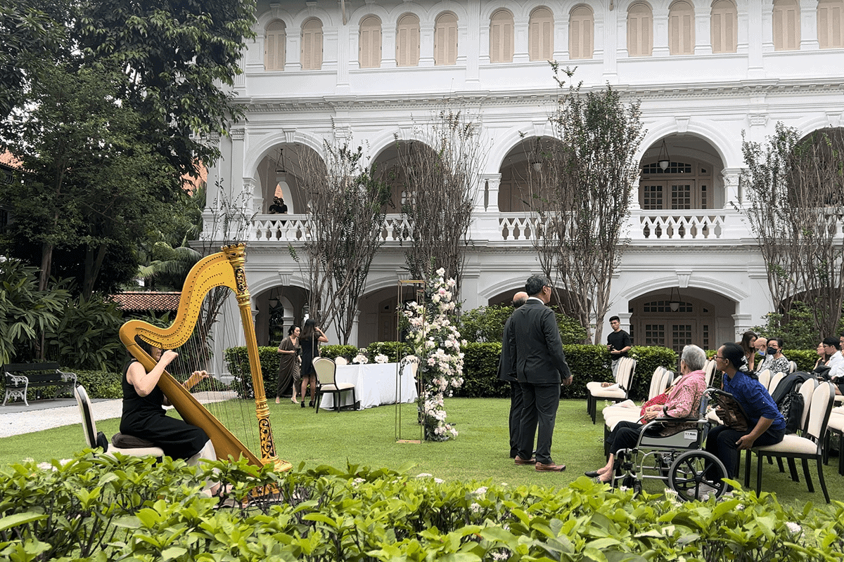 Yvonne's Wedding at The Lawn, Raffles Hotel + Weddings, HS - Weddings Date: 10 December 2022 Venue: The Lawn, Raffles Hotel Client: Yvonne Talent: Solo Harp